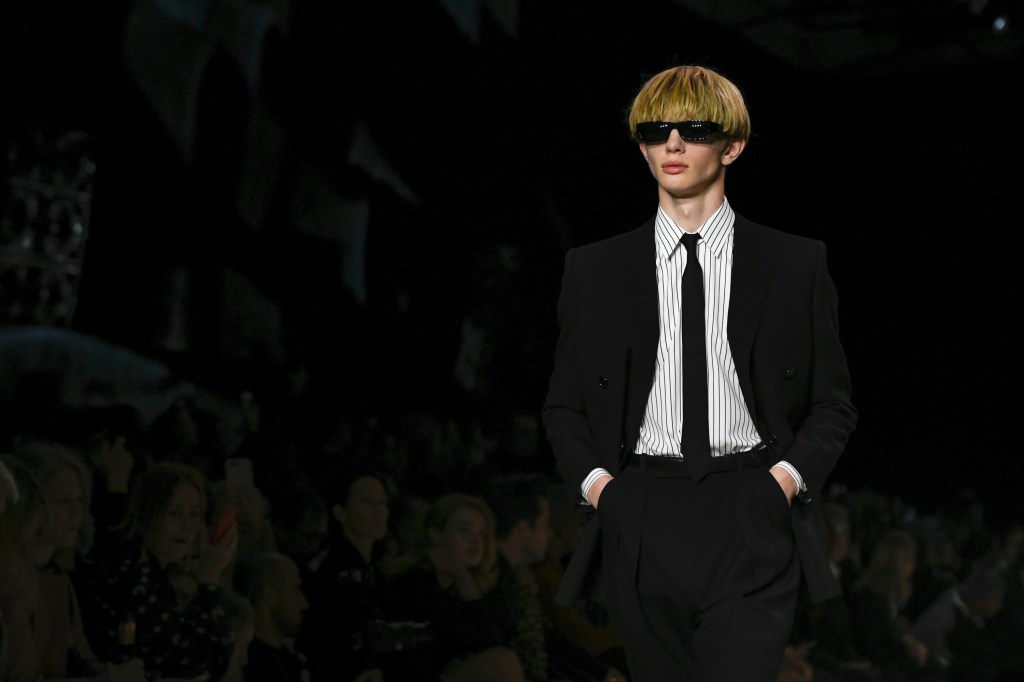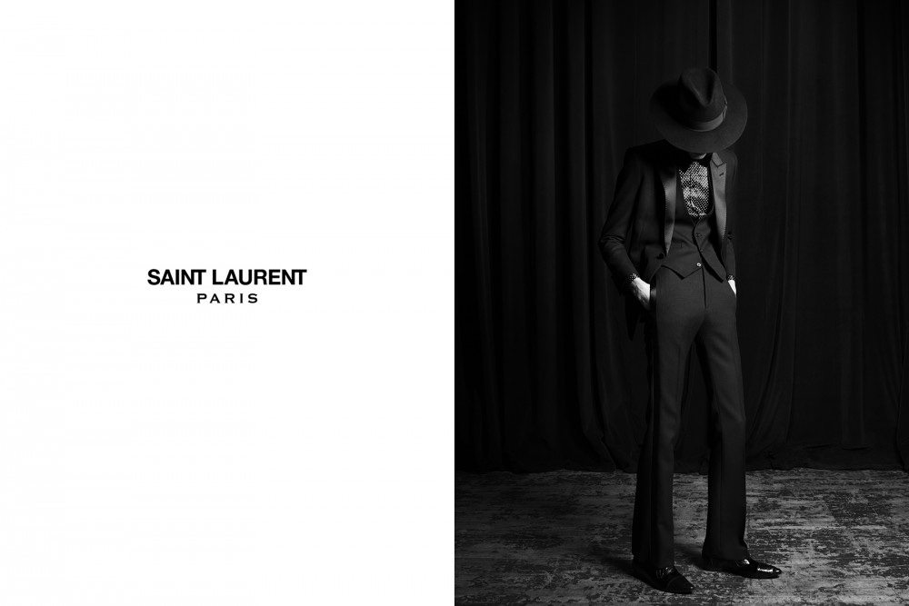Saint Laurentという偉大なメゾンの大役を担うべく、彼はYves Saint Laurentが残したレガシーを大切にしました。Yves Saint Laurentの名作・スモーキングをモダナイズしたこのスモーキングジャケットは、ファーストコレクションのファーストルックを飾ったのでした。